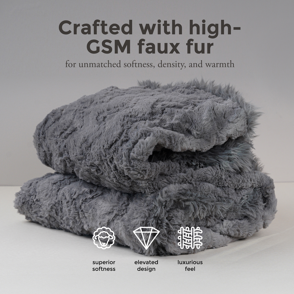 Wrap yourself in plush comfort with our beautifully designed faux fur throws. Made from premium materials chosen for their superior softness and quality, each throw offers the perfect blend of coziness and style. Whether draped over a sofa as a statement piece or used for snuggling during a movie night, our throws bring a sophisticated yet cozy touch to any space. With a variety of textures, designs, and weights to choose from, there’s a perfect throw to complement every home and personal style.