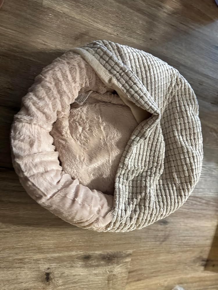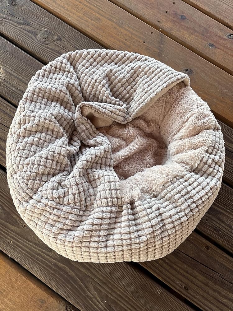 This bed is very soft and cozy, and my small dog really seems to like it. It’s definitely meant for dogs to curl up inside, but mine mostly just lays on top of it instead. It’s great for very small dogs, and the material feels nice to the touch. My only concern is that it doesn’t seem like it will hold its shape for long — the sides are a bit flimsy and might flatten out pretty quickly. Overall, it’s a cute, comfy bed that’s perfect for tiny dogs who like something soft, just don’t expect it to stay perf ectly structured over time.